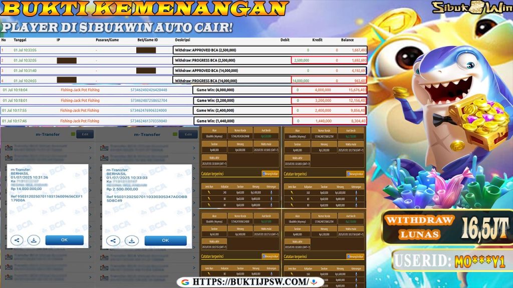Bukti Kemenangan 01 JULI 2025 DI GAME JACKPOT FISING WD 16,5 Juta