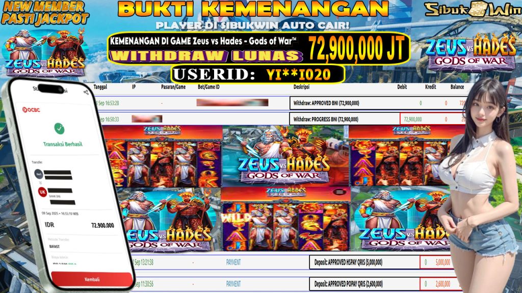 Bukti Kemenangan 04 September 2025 DI GAME Zeus vs Hades – Gods of War™ 72,9 Juta