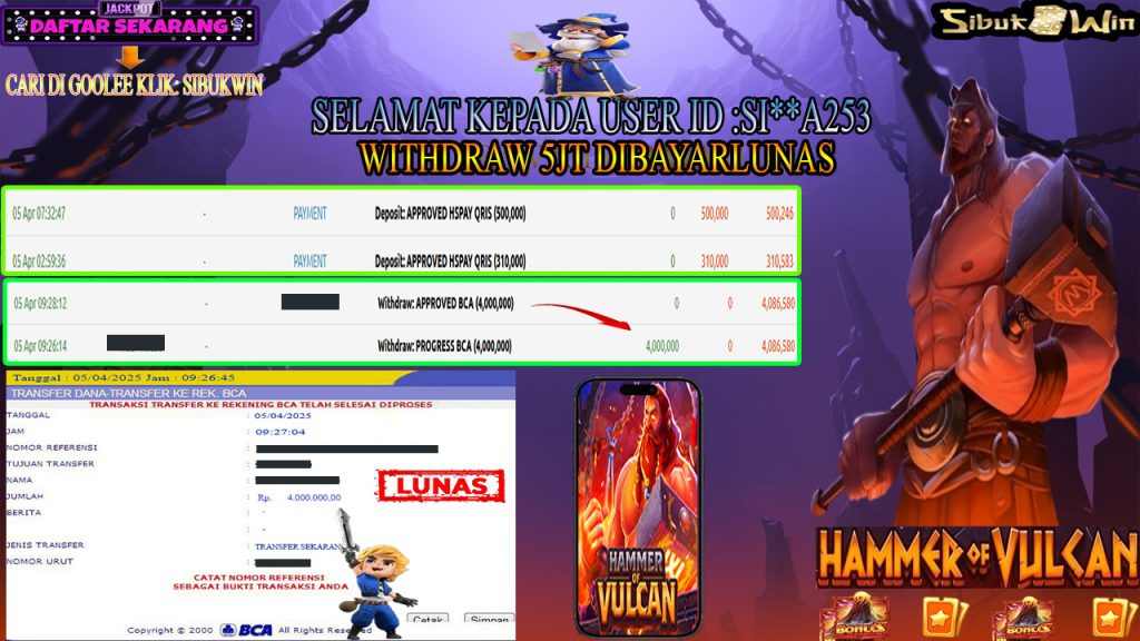 Bukti Kemenangan 05 April 2025 Di Game Hammer of Vulcan WD 5 Juta