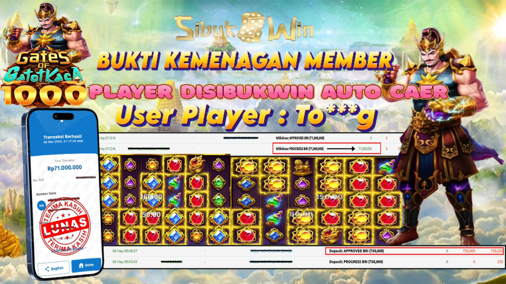 Bukti Kemenangan 06 Mei 2025 Di Game Gates of Gatot Kaca WD 71 Juta