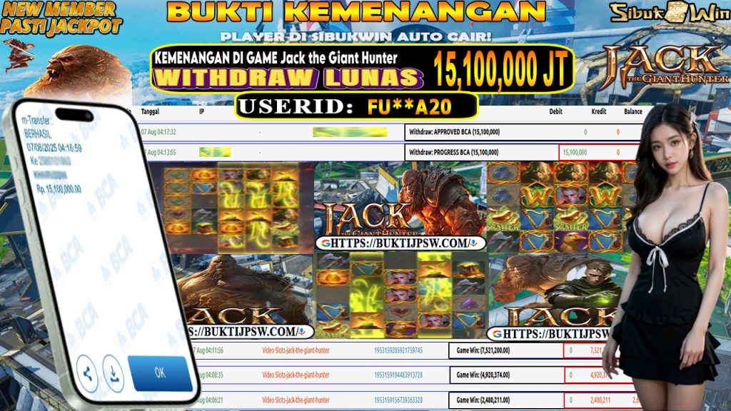 Bukti Kemenangan 07 Agustus 2025 DI GAME Jack the Giant Hunter 15,1 Juta