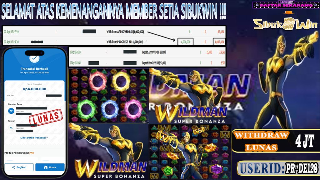 Bukti Kemenangan 07 April 2025 Di Game Wildman Super Bonanza WD 4 Juta