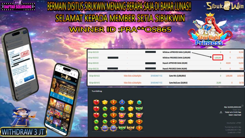 Bukti Kemenangan 08 April 2025 Di Game Starlight Princess WD 3 Juta