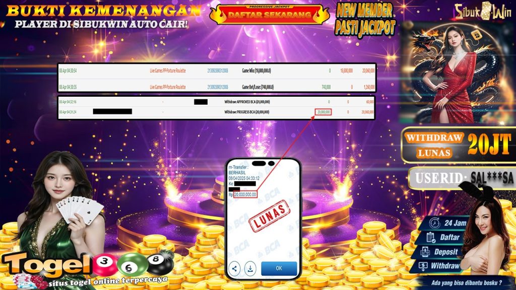 Bukti Kemenangan 08 April 2025 Di Live Casino WD 20 Juta