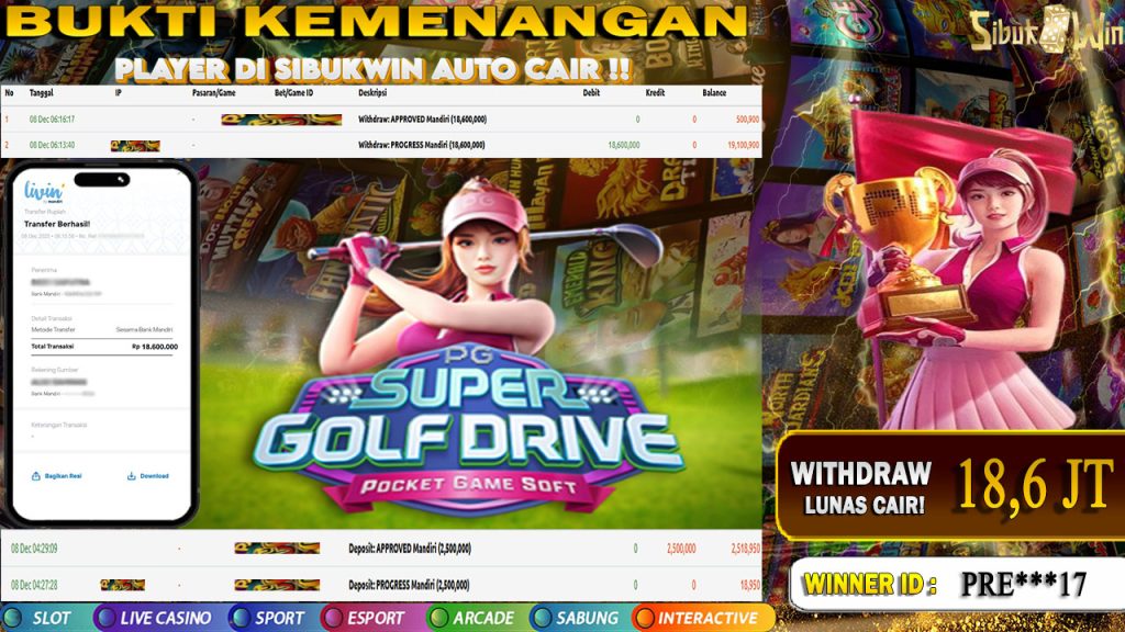 BUKTI KEMENANGAN 08 DESEMBER 2025 DI GAME Super Golf Drive 18,6 JUTA