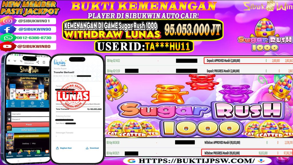 Bukti Kemenangan 08 MEI 2025 Di Game Sugar Rush 1000 WD 95 Juta