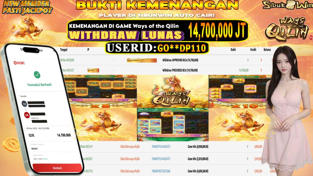 BUKTI KEMENANGAN 08 November 2025 DI GAME ways of the QILIN 14,7 JUTA