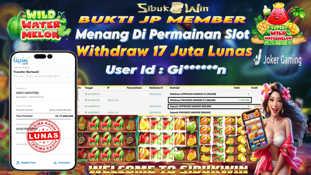 Bukti Kemenangan 09 Juli 2025 Di Game Super Wild Watermelon WD 17 Juta