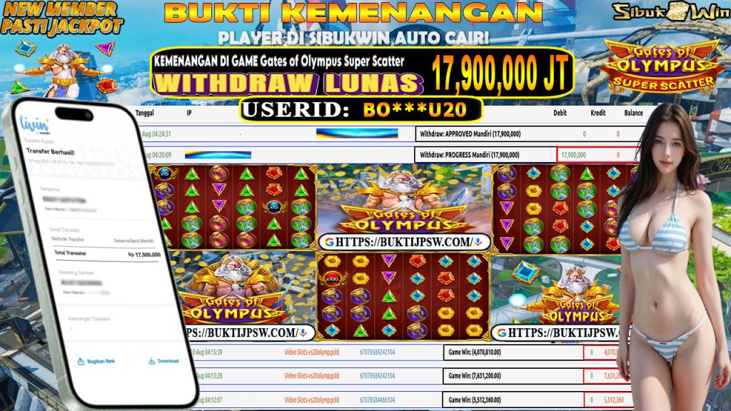 Bukti Kemenangan 10 Agustus 2025 DI GAME Gates of Olympus Super Scatter 17,9 Juta