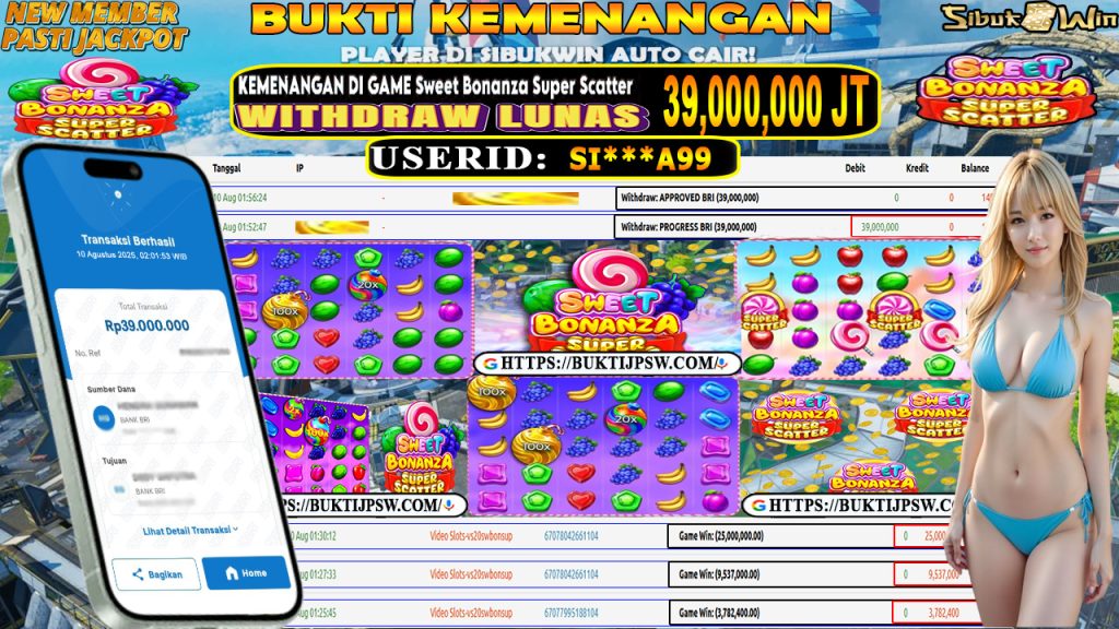 Bukti Kemenangan 10 Agustus 2025 DI GAME Sweet Bonanza Super Scatter 39 Juta