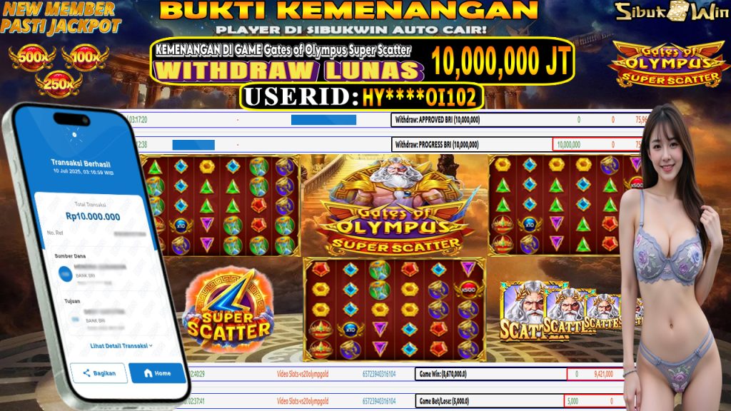 BUKTI KEMENANGAN 10 JULI 2025 DI GAME Gates of Olympus Super Scatter 10 JUTA