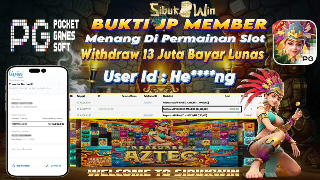 Bukti Kemenangan 10 Juli 2025 Di Game Treasures of Aztec WD 13 Juta