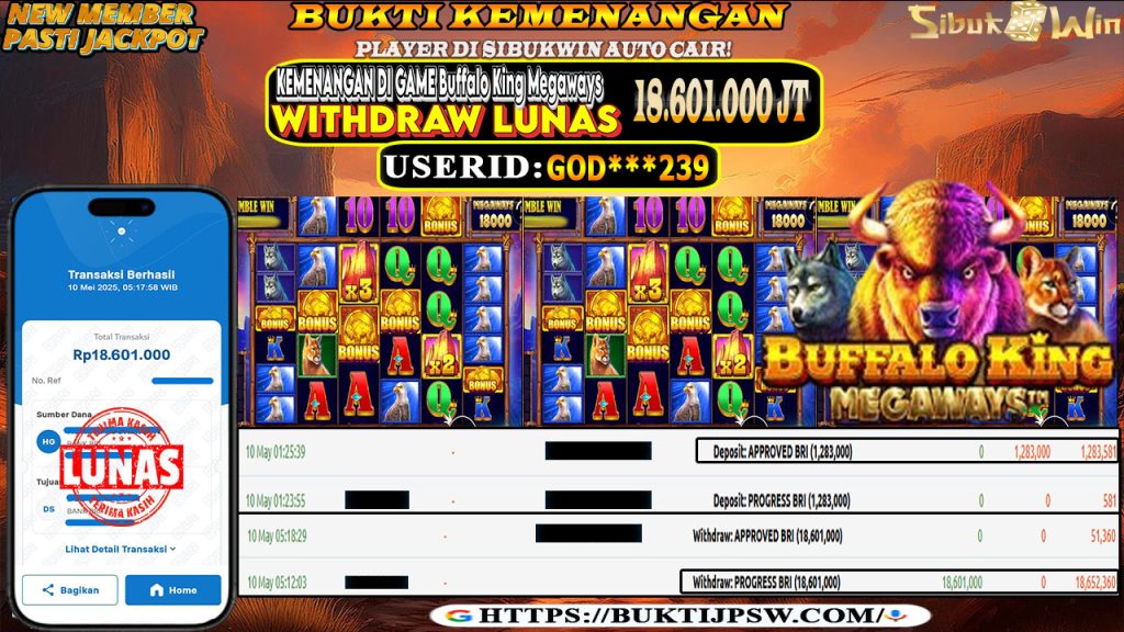 Bukti Kemenangan 10 MEI 2025 Di Buffalo King Megaways WD 18,6 Juta