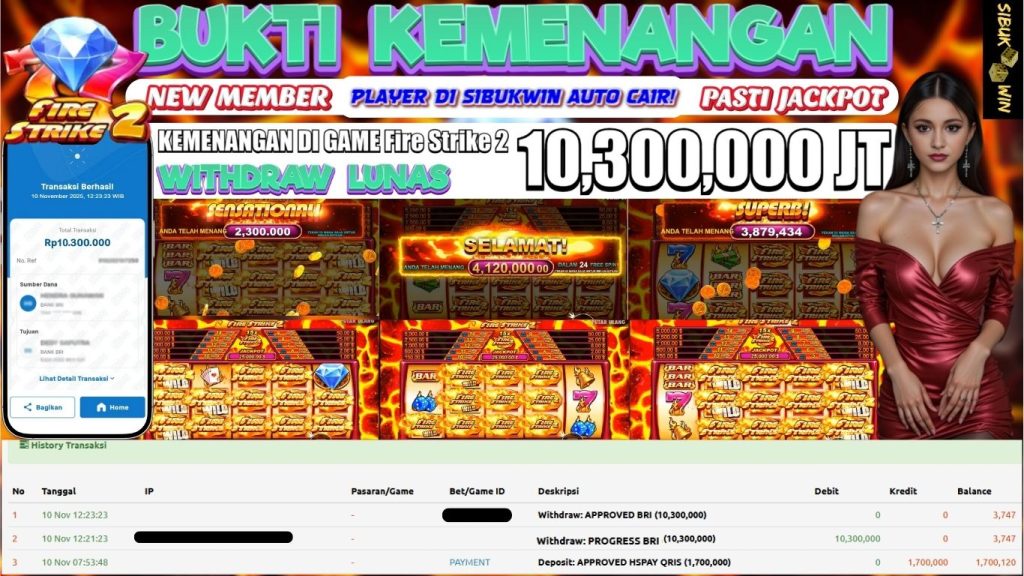 BUKTI KEMENANGAN 10 NOVEMBER 2025 DI GAME FIRE STRIKE 2 10,3 JUTA