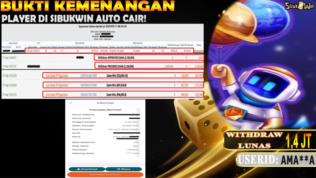 Bukti Kemenangan 11 MEI 2025 Di Game Spaceman WD 1,4 Juta