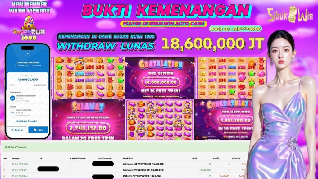 BUKTI KEMENANGAN 11 October 2025 DI GAME SUGAR RUSH 1000 18,6 JUTA