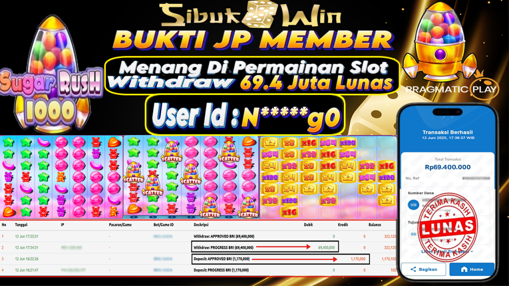 Bukti Kemenangan 12 Juni 2025 Di Game Sugar Rush 1000 WD 69.4 Juta