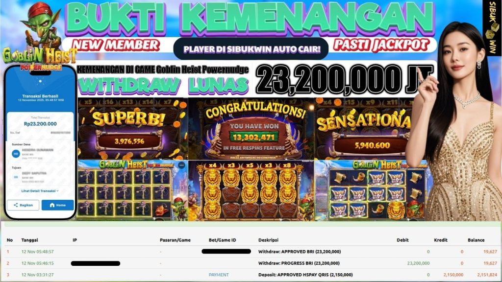 BUKTI KEMENANGAN 12 NOVEMBER 2025 DI GAME GOBLIN HEIST POWERNUDGE 23,2 JUTA