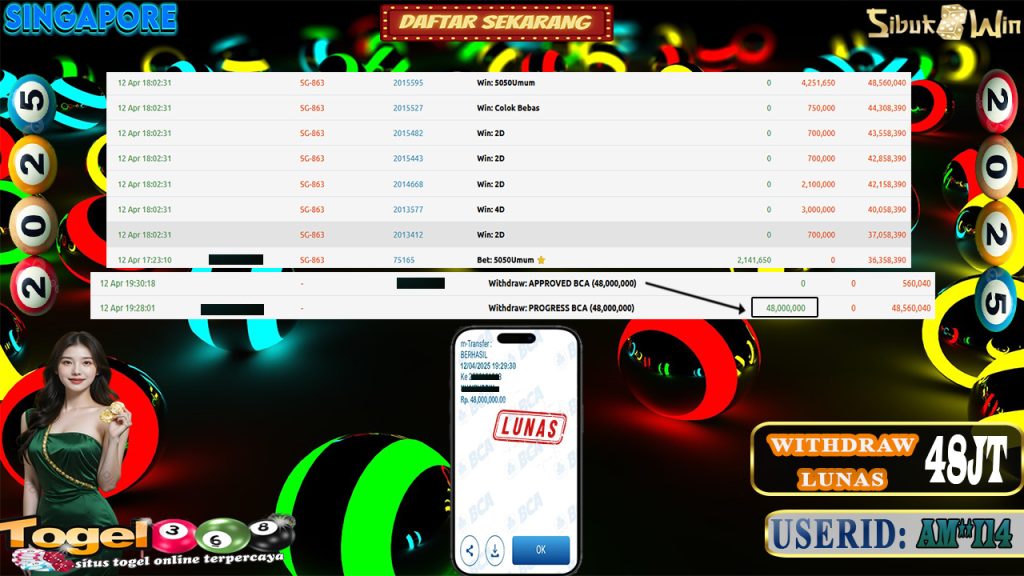 Bukti Kemenangan 13 April 2025 Di Togel Singapore WD 48 Juta
