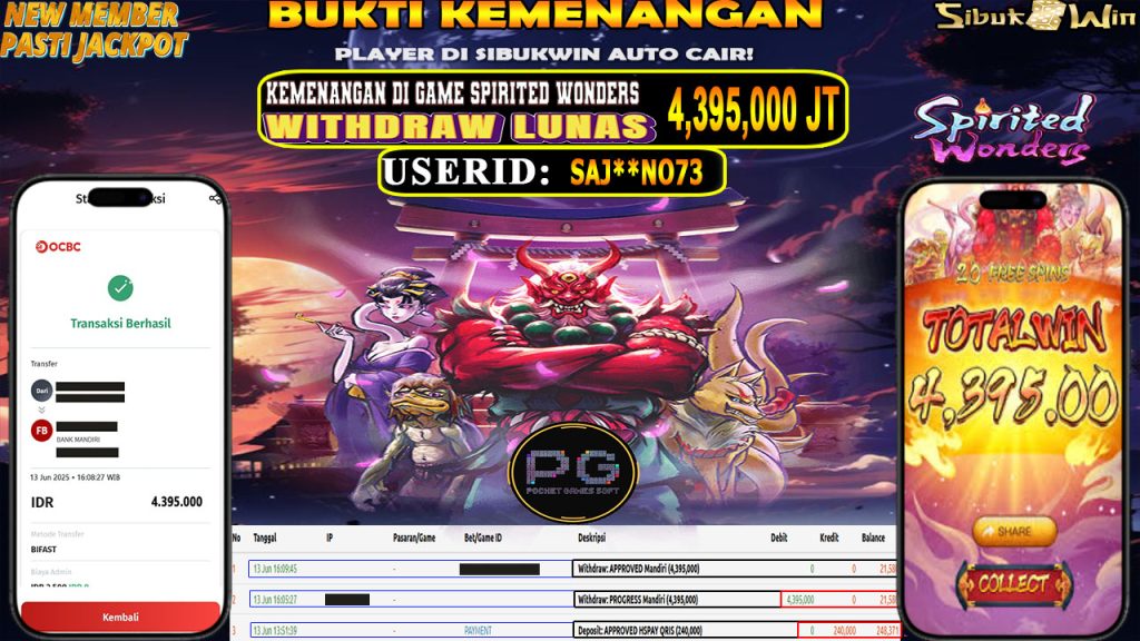 Bukti Kemenangan 13 JUNI 2025 Di GAME Spirited Wonders 4,3 Juta