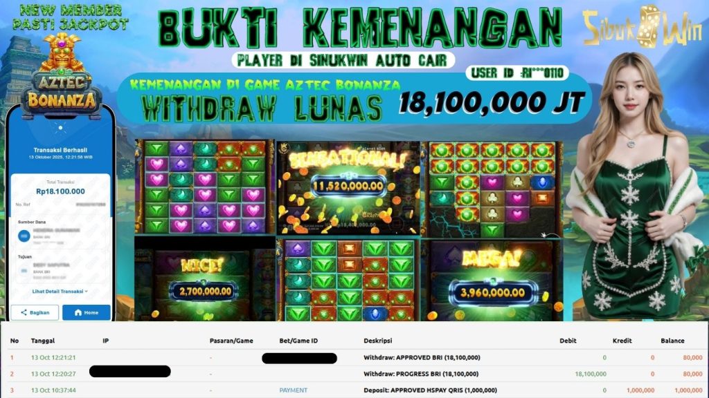 BUKTI KEMENANGAN 13 October 2025 DI GAME Aztec Bonanza 18,1 JUTA