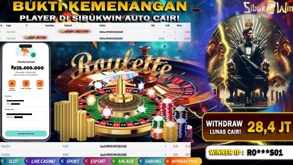 Bukti Kemenangan 14 Desember 2025 Di Game Roulette Lobby 28,4 JUTA