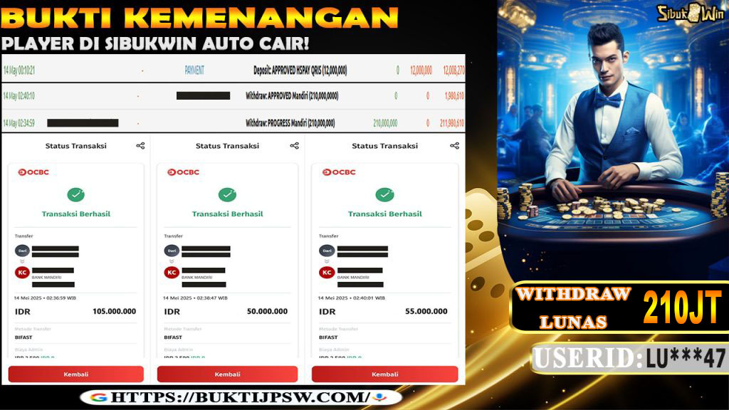 Bukti Kemenangan 14 MEI 2025 Di Baccarat WD 210 Juta