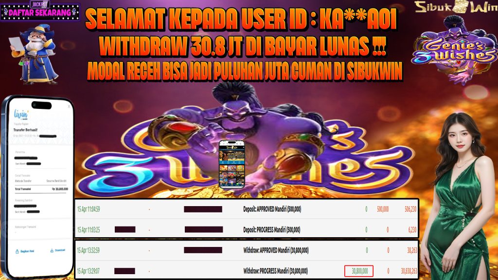 Bukti Kemenangan 15 April 2025 Di Game Genies 3 Wishes WD 30,8 Juta