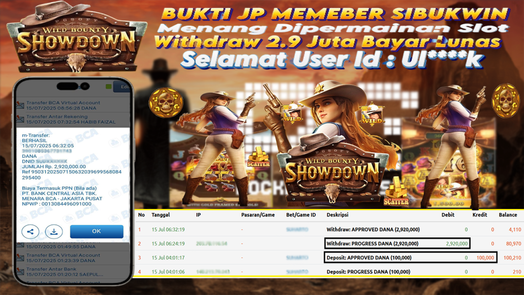 Bukti Kemenangan 15 Juli 2025 Di Game Wild Bounty Showdown WD 2.9 Juta