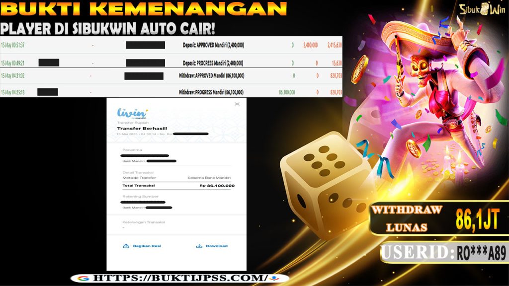 Bukti Kemenangan 15 MEI 2025 Di GAME Wild Bandito WD 86,1 Juta