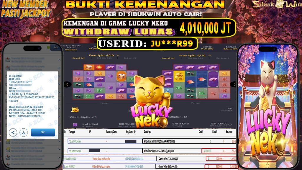 Bukti Kemenangan 16 JUNI 2025 Di GAME Lucky Neko WD 4 Juta