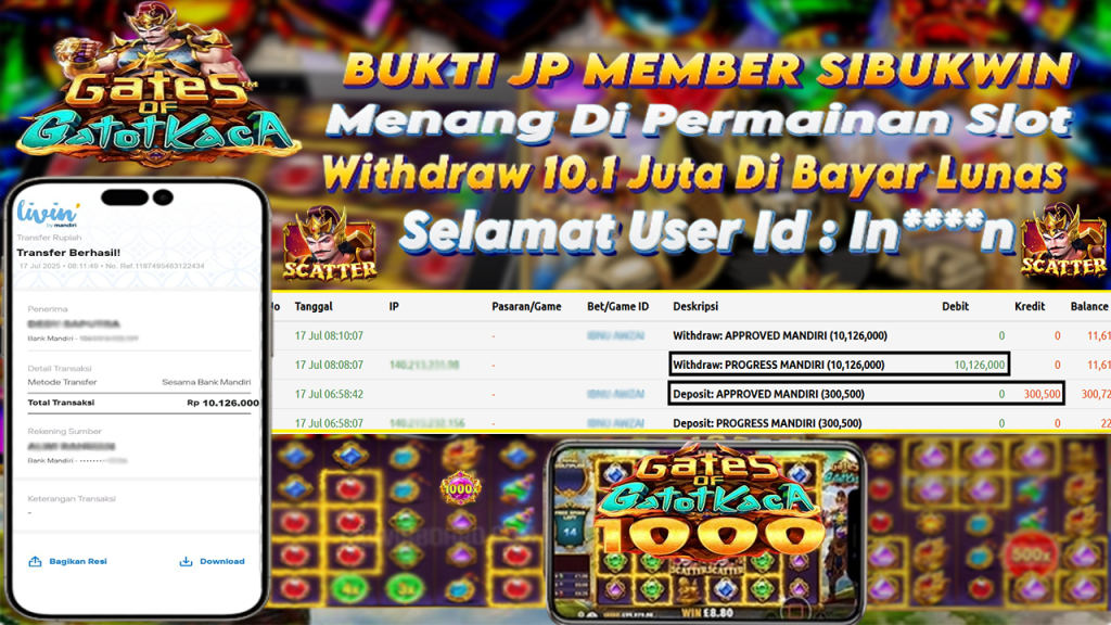 Bukti Kemenangan 17 Juli 2025 Di Game Gates of Gatot Kaca 1000 Withdraw 10.1 Juta