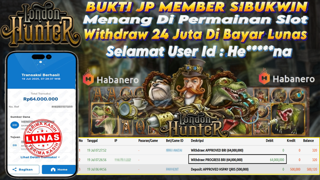 Bukti Kemenangan 19 Juli 2025 Di Game London Hunter WD 64 Juta