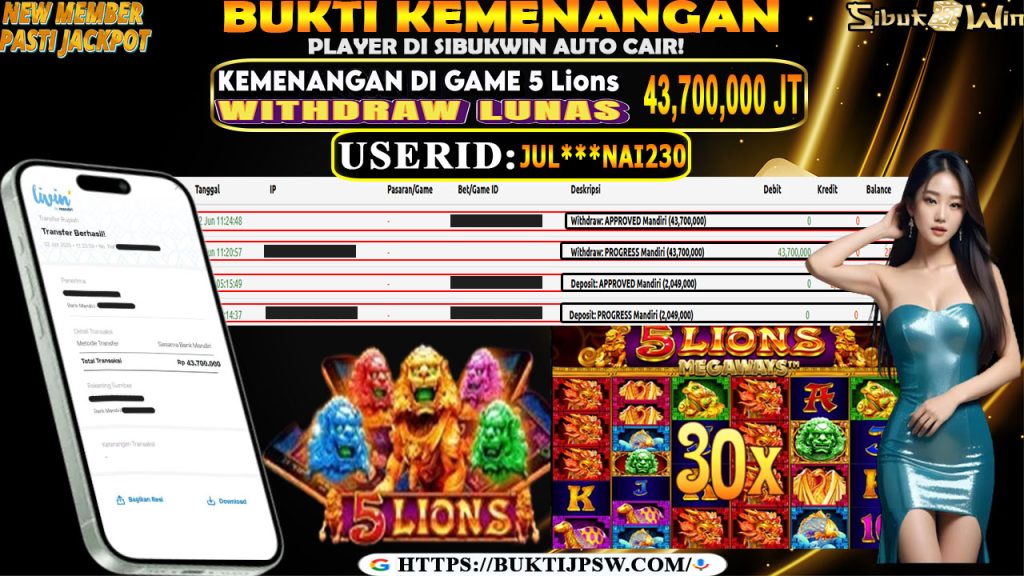 Bukti Kemenangan 2 JUNI 2025 Di GAME 5 Lions WD 43,7 uta