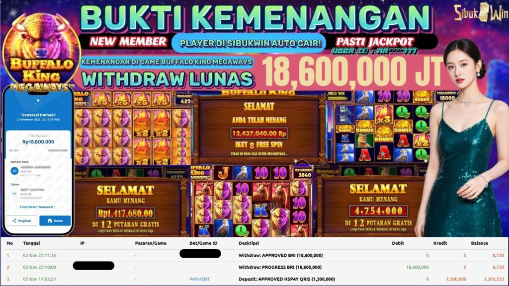 BUKTI KEMENANGAN 2 NOVEMBER 2025 DI GAME BUFFALO KING MEGAWAYS 18,6 JUTA