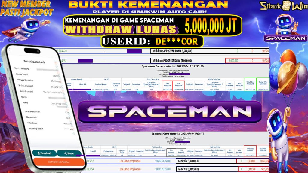 Bukti Kemenangan 20 JULI 2025 DI GAME Spaceman WD 5 Juta