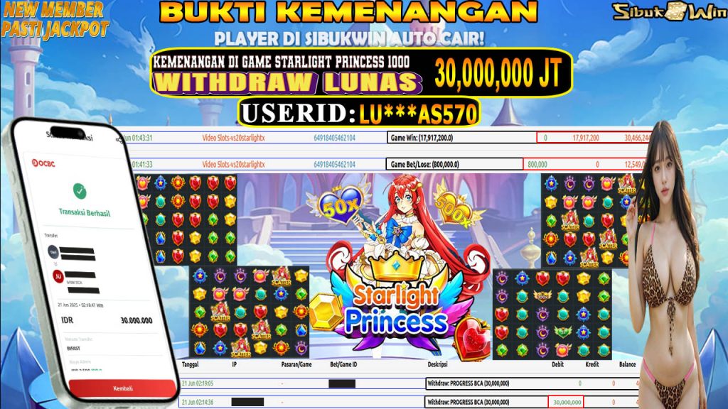Bukti Kemenangan 21 JUNI 2025 DI GAME Starlight Princess WD 30 Juta