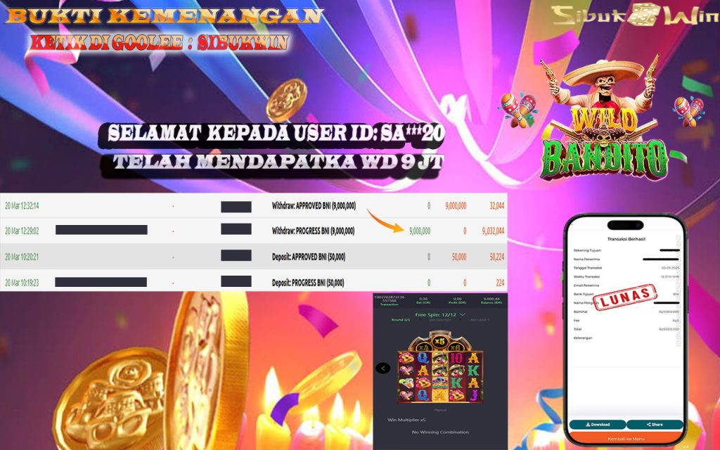 Bukti Kemenangan 20 Maret 2025 Di Game Wild Bandito WD 9 Juta
