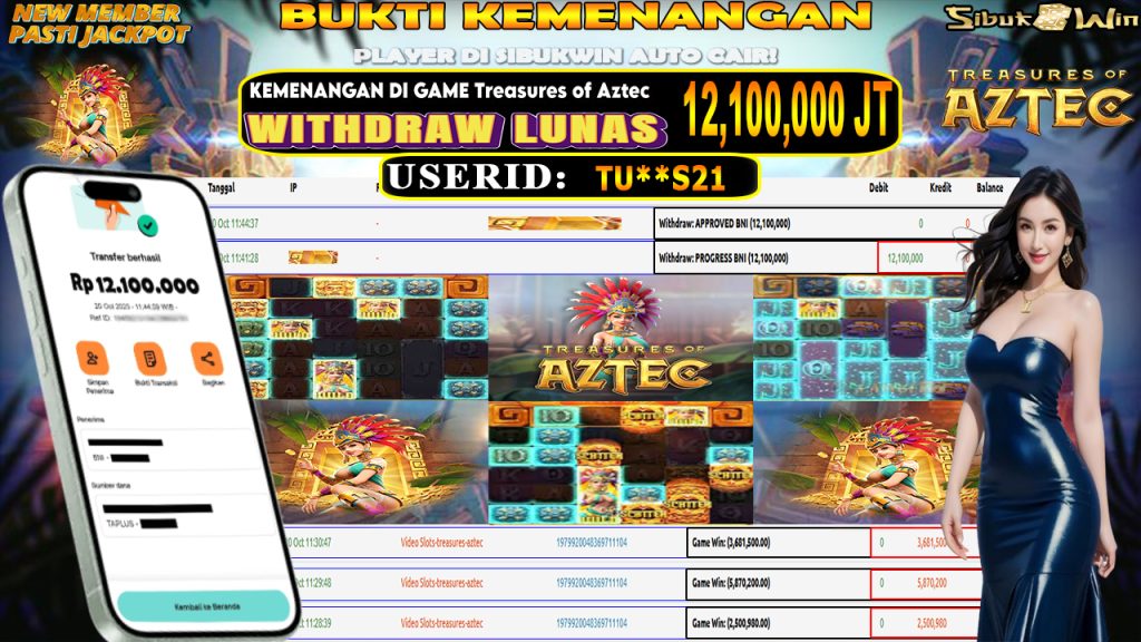 BUKTI KEMENANGAN 20 October 2025 DI GAME Treasures of Aztec 12,1 JUTA