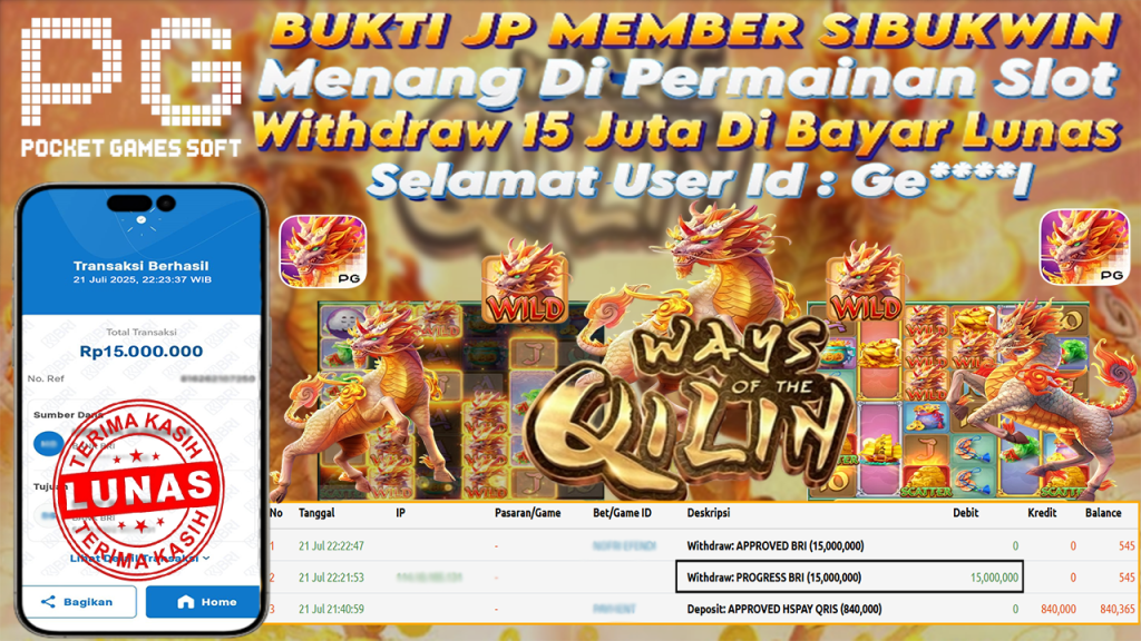 Bukti Kemenangan 21 Juli 2025 Di Game Ways of the Qilin WD 15 Juta