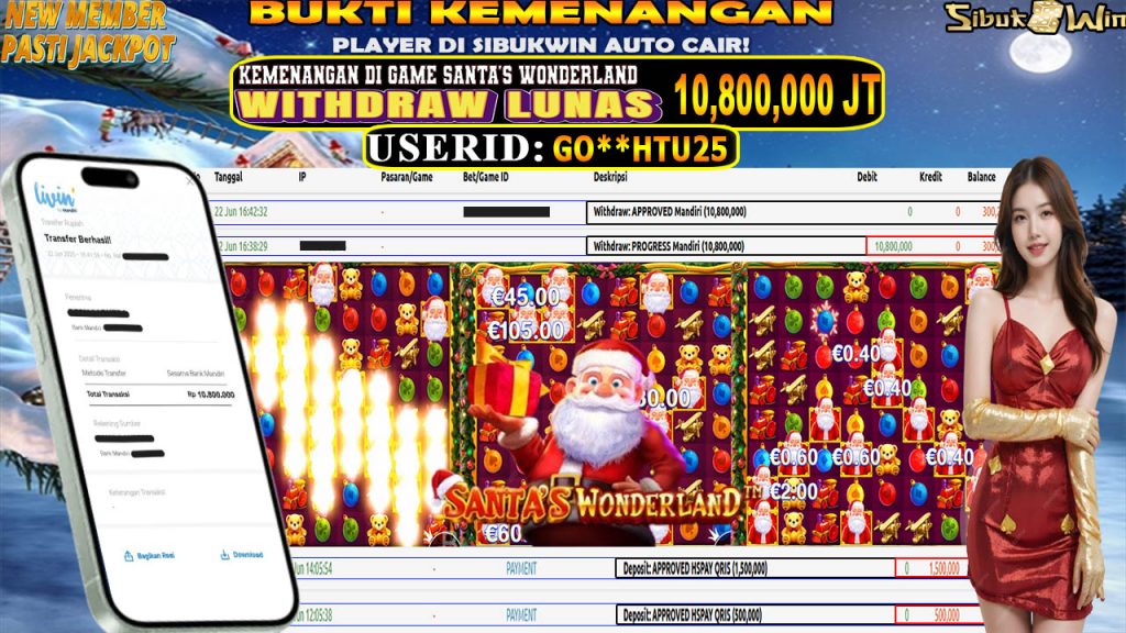 Bukti Kemenangan 21 JUNI 2025 DI GAME Santa’s Wonderland WD 13,5 Juta