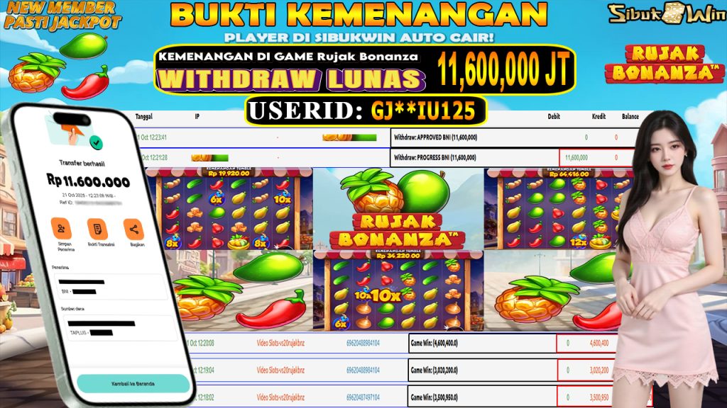 BUKTI KEMENANGAN 21 October 2025 DI GAME Rujak Bonanza 11,6 JUTA