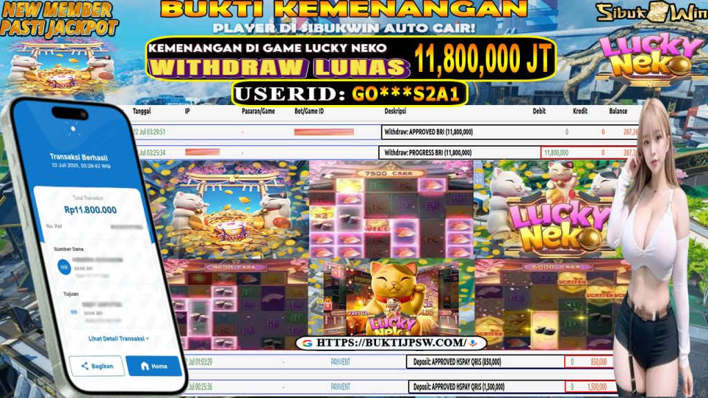 Bukti Kemenangan 22 JULI 2025 DI GAME Lucky Neko WD 11,8 Juta