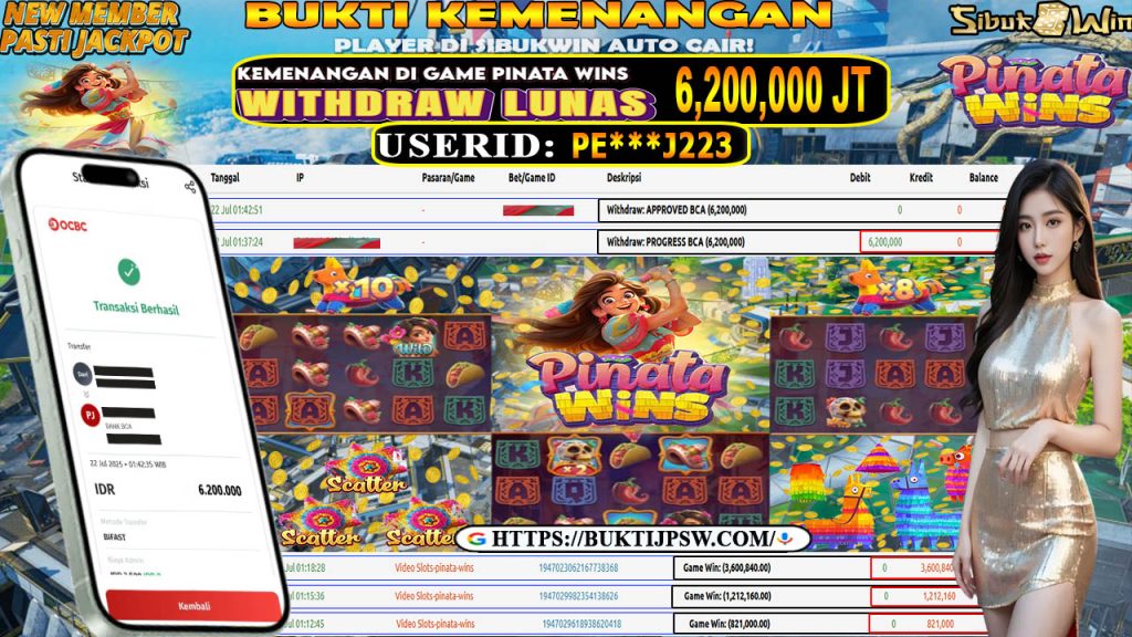 Bukti Kemenangan 22 JULI 2025 DI GAME Pinata Wins WD 6,2 Juta