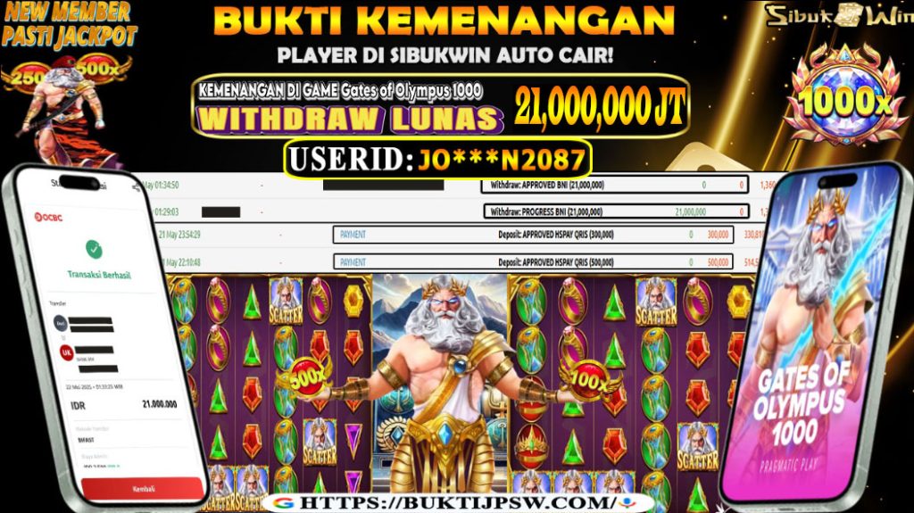 Bukti Kemenangan 22 MEI 2025 Di GAME Gates of Olympus 1000 WD 21 Juta