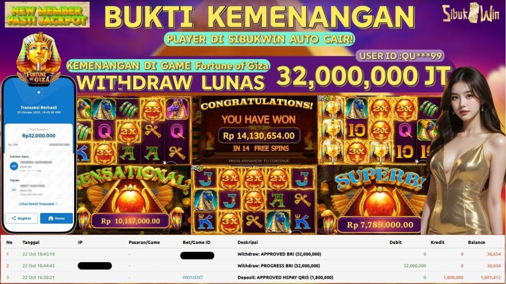 BUKTI KEMENANGAN 22 October 2025 DI GAME FORTUNE OF GIZA 32 JUTA