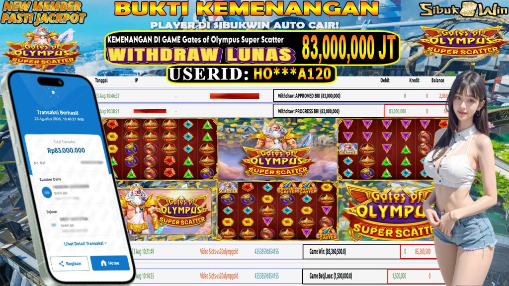 Bukti Kemenangan 23 Agustus 2025 DI GAME Gates of Olympus Super Scatter 83 Juta