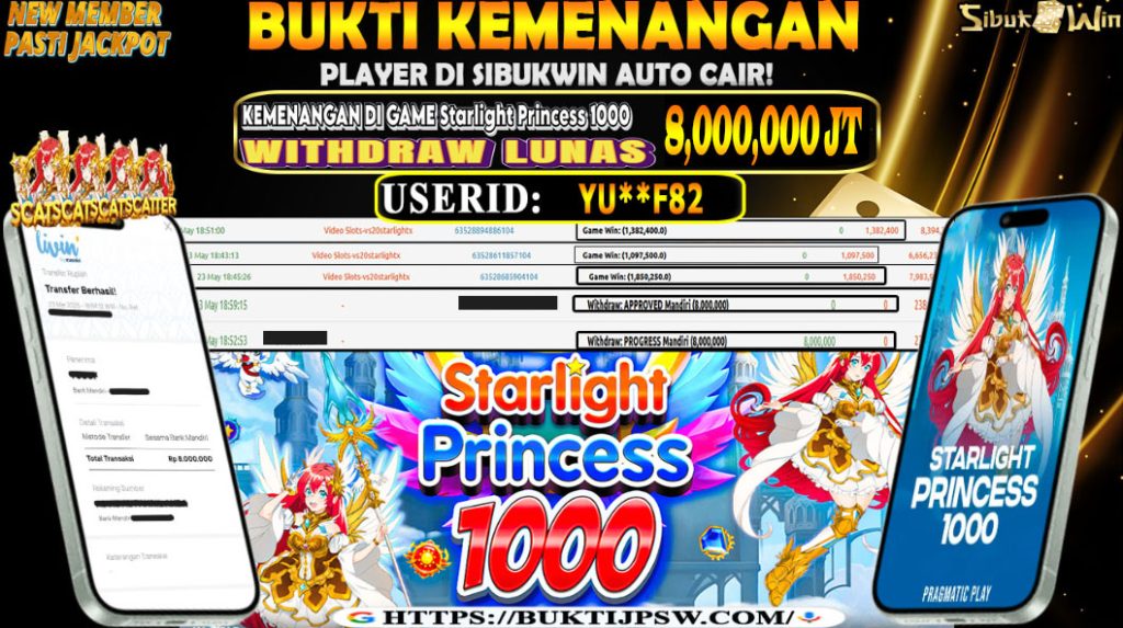 Bukti Kemenangan 23 MEI 2025 Di GAME Starlight Princess 1000 WD 8 Juta