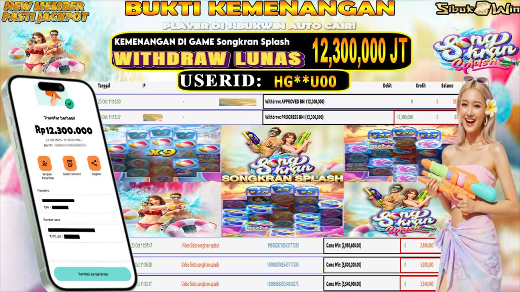 BUKTI KEMENANGAN 23 October 2025 DI GAME Songkran Splash 12,3 JUTA
