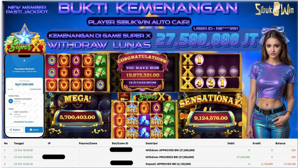 BUKTI KEMENANGAN 23 October 2025 DI GAME SUPER X 27,5 JUTA